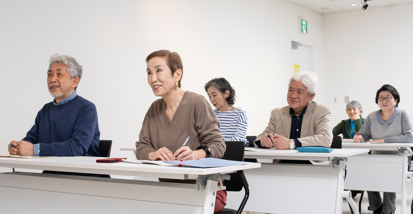 私たちは認知症予防を目的とする講座のほか、グループワークを通したコミュニティ形成や、定期的な認知機能の測定などの目標設定により、イキイキ参加・継続できるプログラムを提供します。